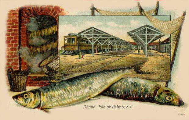 The station below is the trolley station at the Isle of Palms outside Charleston. Before the Cooper River Bridges were built people got to the resort town by ferry and would take the trolley to the Isle of Palms. The trolley line was abandoned at the construction of the first of the Cooper River Bridges in the mid 1920s.